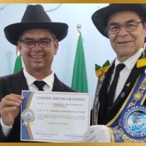 O Grão-mestre Estadual de Alagoas, Ir∴ Rogio Jose Oliveira Lima, prestigia a entrega de Certificados de Gratidão às Lojas Maçônicas que contribuíram com as ações de Solidariedade da Fraternidade Feminina Cruzeiro do Sul Jardim das Acácias, realizada pela A∴R∴L∴S∴ Alexandria nº4090 no último dia 16 de maio de 2023.