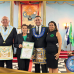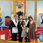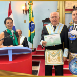 Durante a Sessão, o Venerável Mestre Daniel Bernardes foi homenageado com o diploma e a medalha Laelson Rodrigues, a mais alta comenda da FRAFEM, em reconhecimento ao relevante trabalho desempenhado em prol da Fraternidade Feminina.