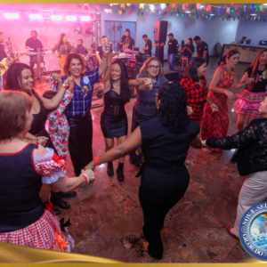 A programação foi cuidadosamente preparada para proporcionar uma experiência memorável a todos os presentes. O palco foi animado pelas talentosas artistas Nathalia Martins e Wilma Araújo, que conduziram o público com muito forró, xote e baião. A trilha sonora trouxe à tona a cultura nordestina em sua forma mais autêntica, com ritmos tradicionais que embalaram danças e momentos de descontração.